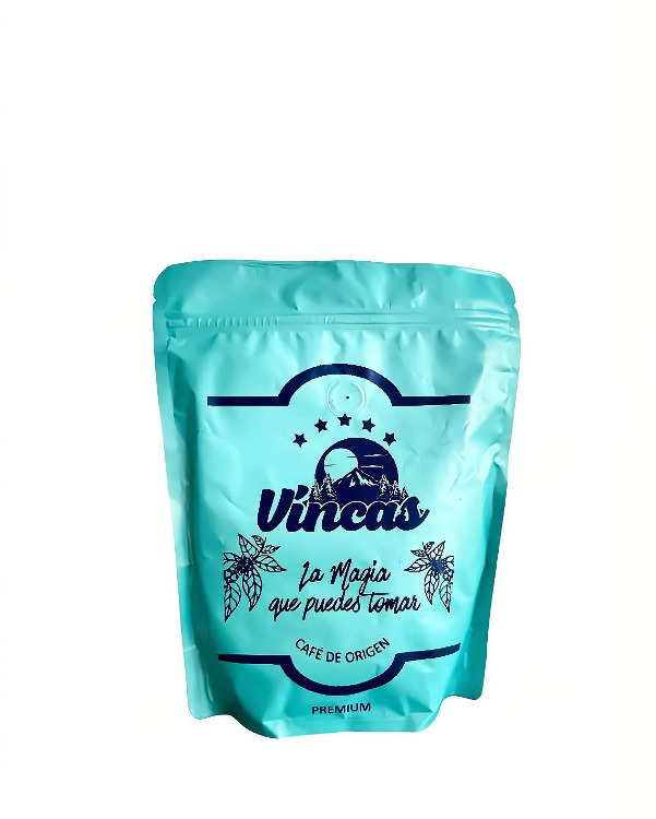 Blend de café de la variedad castillo y tabi, finca los pinos municipio de Cunday-Tolima, productor Juan Camilo Vincos Carrillo, con 0% de acrilamida, perfil de taza suave con aroma y fragancia pronunciadas, cuerpo medio bajo, acidez media con notas frutales, altura 1800 m.s.n.m. elaborado por manos campesinas.